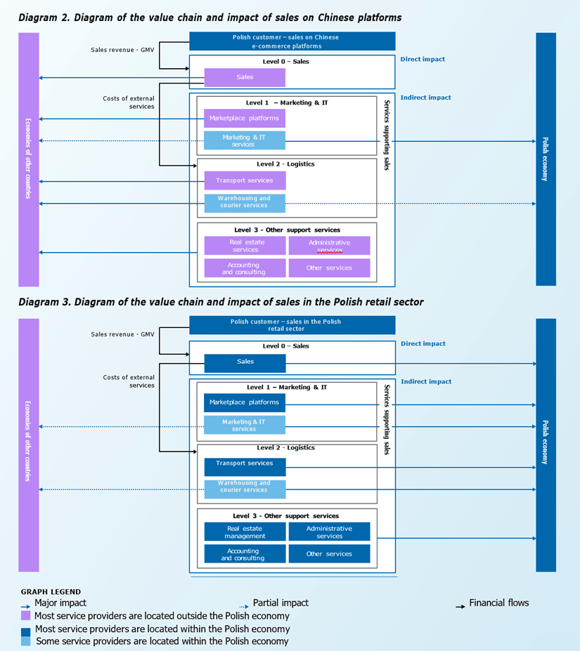 - valoarea bruta a marfii vandute de acest app-uri asiatice in Polonia, in perioada octombrie 2024 – septembrie 2025 este estimata de raportul amintit la 11,6 miliarde PLN (2,75 miliarde $)