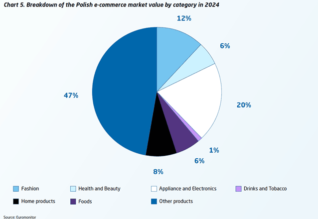 Motivati puternic de pandemia COVID-19, polonezii (care cumparau produse si servicii online doar in proportie de 32%, in 2013) au devenit din ce in ce mai pasionati de achizitiile digitale: in 2022, aproape 62% faceau cumparturi pe Internet; in 2024, 87,6% dintre polonezii de 16-74 de ani intrau pe Internet cel putin o data/saptamana, iar 67,4% dintre ei cumparau ceva online. Comparativ, media europeana era de 71,8%. In acelasi an, in Polonia existau peste 70.000 de website-uri e-commerce.