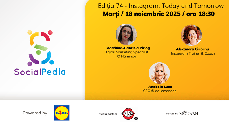 „Instagram a devenit in timp mai mult decat o platforma de inspiratie vizuala. Astazi, este un spatiu in care se nasc comunitati, se consolideaza branduri si se transforma conversatiile in rezultate reale. La SocialPedia 74 – Instagram: Today and Tomorrow ne dorim sa oferim profesionistilor din digital o perspectiva actuala si aplicata despre cum se schimba platforma si cum pot ramane relevanti intr-un mediu tot mai competitiv. Asa cum facem la fiecare editie, aducem pe scena oameni care inspira prin experienta si autenticitate, pentru ca misiunea SocialPedia a fost mereu aceea de a creste, impreuna, calitatea comunicarii online din Romania”, transmit organizatoarele evenimentului, Sabina Cornovac si Iulia Stanescu.